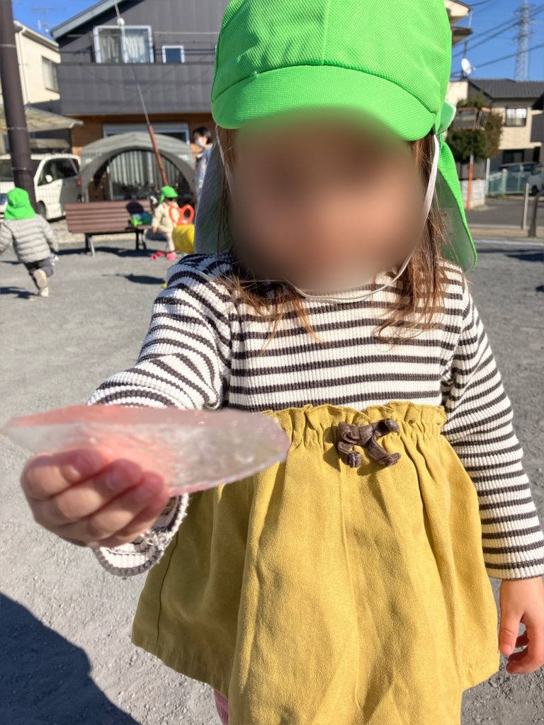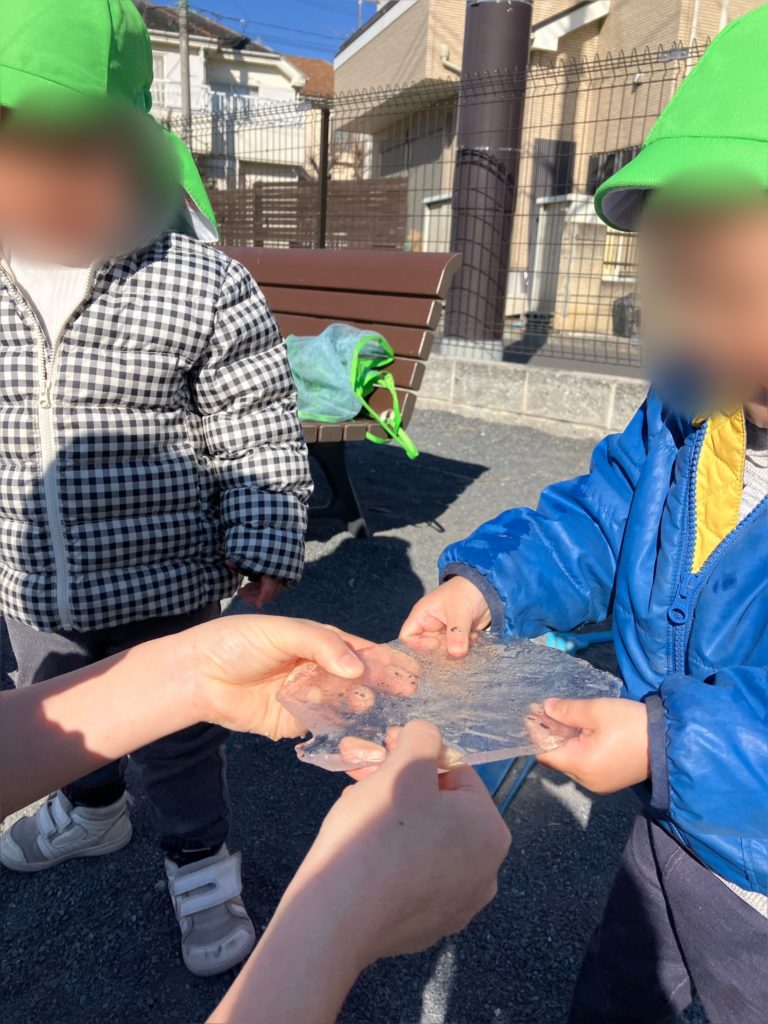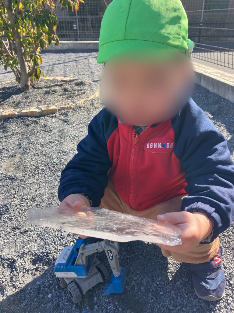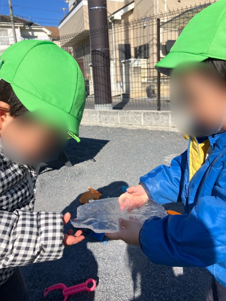 触ったみたり、保育者に尋ねてみた結果、どうやらこれは「氷」という水の仲間だと判明しました!