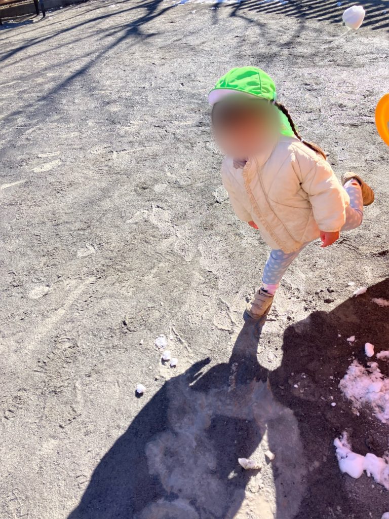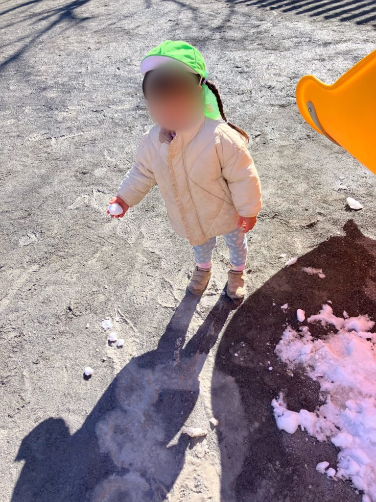 雪は握ると固まることを知り、せっかくなのでボールにして投げてみたよ! えい!