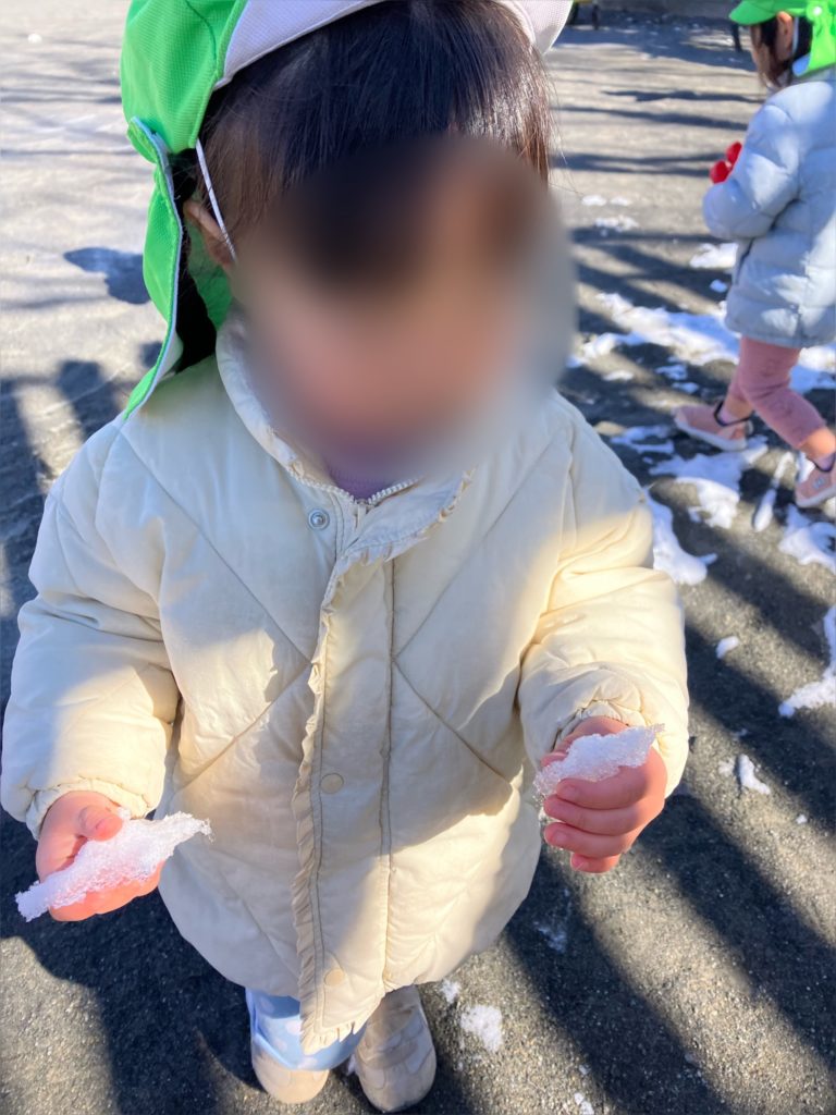 そして、またある日は「白くて冷たいもの」も見つけました!